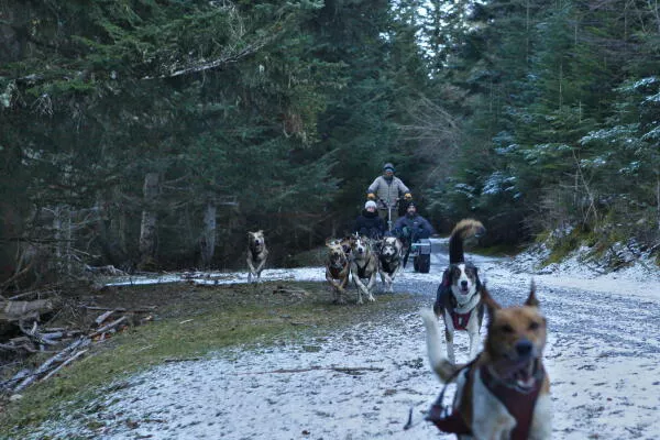 Venez découvrir l'impressionant attelage du kart : pas moins de douze chiens pour des sensations garanties.