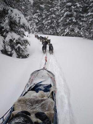 Installez-vous confortablement et embarquez pour une balade d'environ 45 minutes en pleine nature. Le musher vous conduira à travers les pistes forestières et vous profiterez de sensations inoubliables au rythme des chiens.