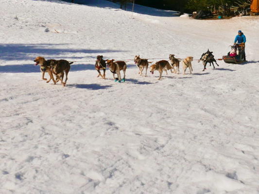 Les hivers se succèdent et ne se ressemblent pas : les conditions d'enneigement aléatoires nous permettent néanmoins de vous proposer l'activité.. en traineau à roues ! Autrefois, le traineau à roues était seulement l'engin nous permettant d'entrainner les chiens à l'automne afin de préparer leur endurance pour assurer la saison hivernale. Il a été amélioré et rendu confortable pour permettre aux passagers de profiter de balades sportives et inoubliables, même lorsque la neige n'est pas au rendez-vous. L'attelage est impressionnant : pas moins de douze chiens tractent le traineau à roues sur le plateau du Vercors.